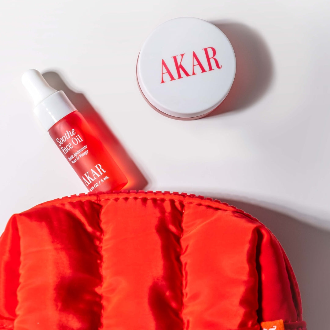 Stuff everyone’s stocking with our dainty favorites. These covetable treasures make the perfect party favor or teacher gift. Each Mini Puffer Stocking Stuffer is adorned with a gold bauble and filled with our best-selling Soothe Face Oil 5ml and Nourish Lip Butter.